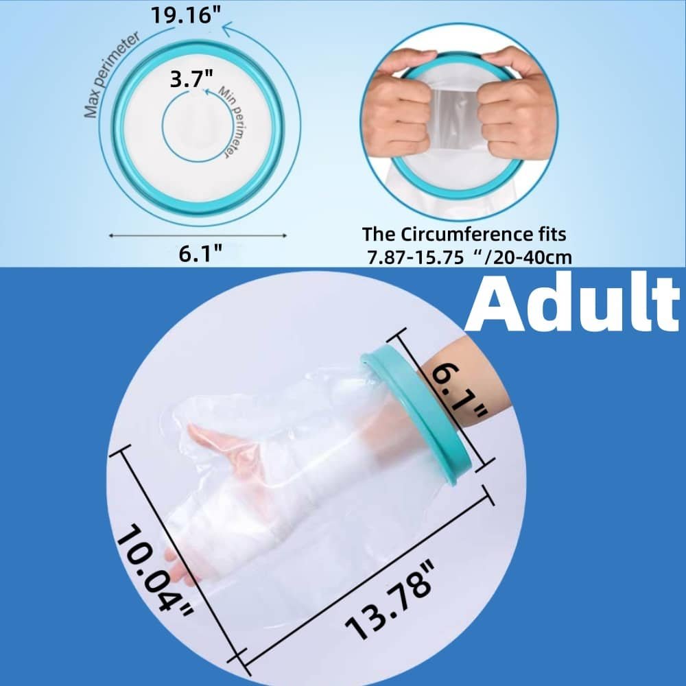 Features: They usually have a wide, adjustable silicone or latex-free elastic seal that fits snugly around the upper forearm, creating a watertight barrier. They are often made from clear, durable PVC or TPU, allowing you to see the cast underneath.