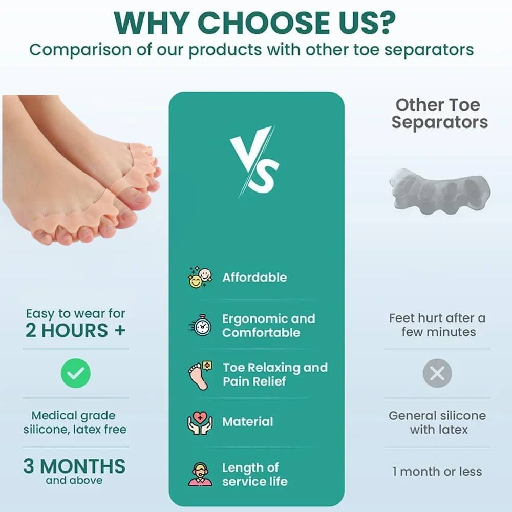 Best Therapeutic Silicone Spacers: Brands like NatraCure and Vive offer excellent firmer silicone spacers that are a great middle-ground for treating bunions and overlapping toes without the full investment of Correct Toes.
